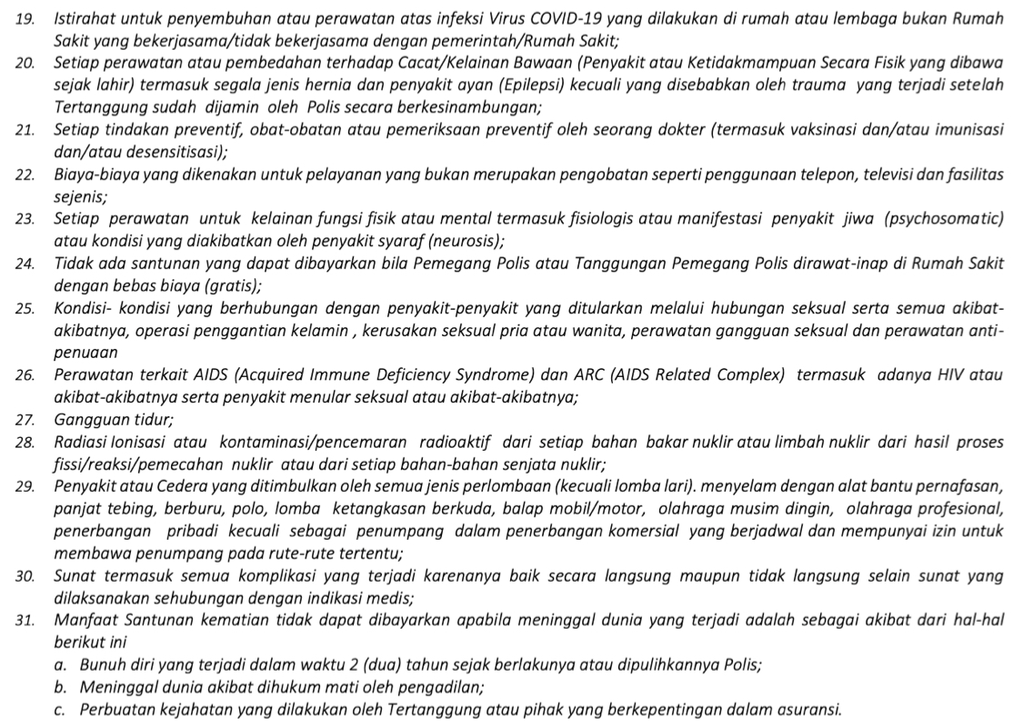 Jadi pastikan untuk mendaftar asuransi kesehatan di kala Anda masih sehat, bukan disaat Anda sudah menderita atau terdiagnosa atau divonis menderita sakit penyakit tertentu.