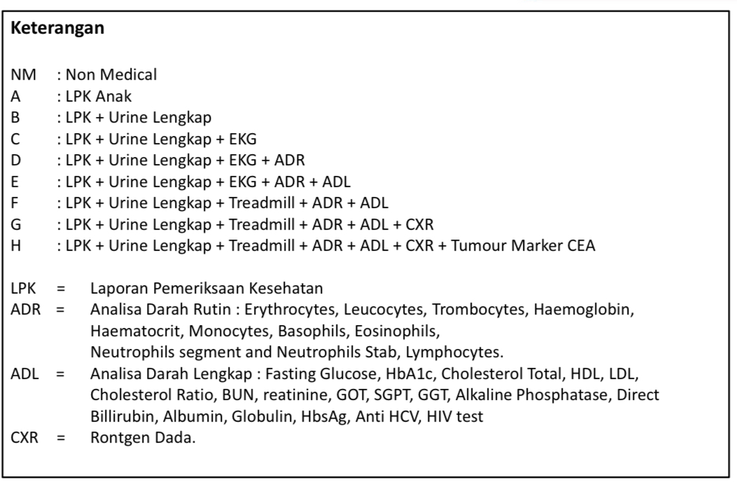 Tabel Medical Check Up untuk Calon Peserta Asuransi Kesehatan Smile Medika Ultima
