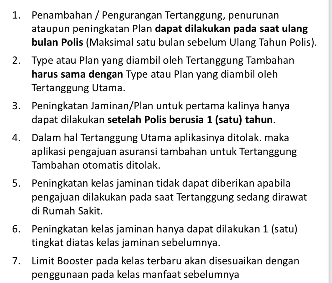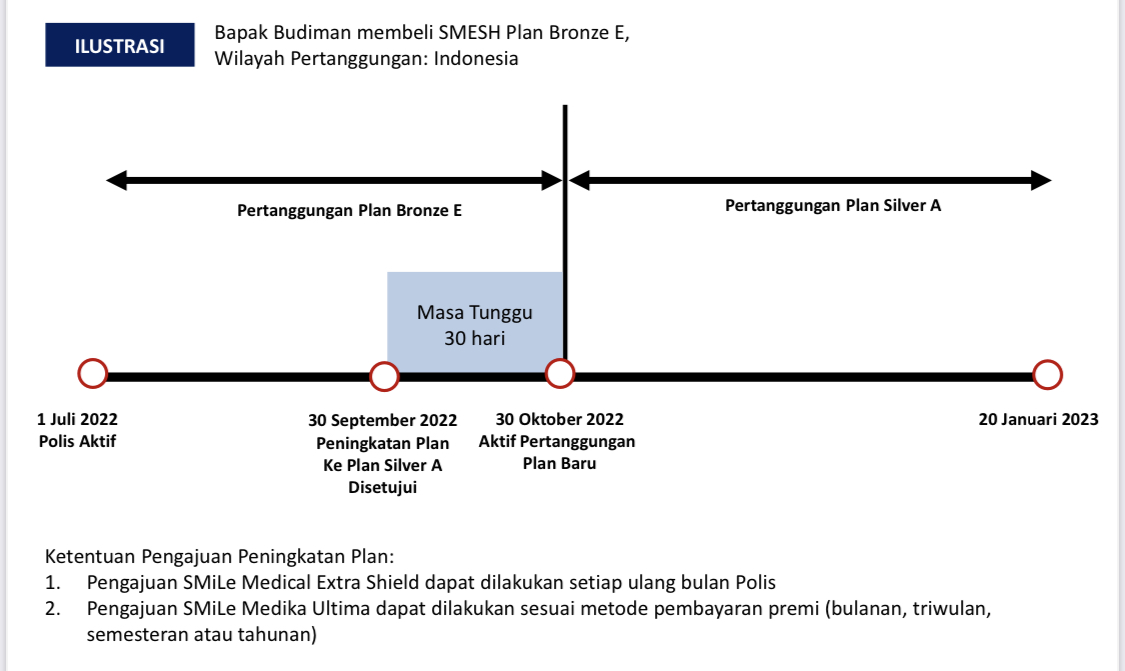 Oleh sebab itu disarankan untuk memilih minimal plan Bronze B untuk perlindungan yang lebih maksimal kecuali jika memang budget/anggaran Anda sangat terbatas. Anda dapat melakukan upgrade/downgrade plan di setiap ulang tahun polis.