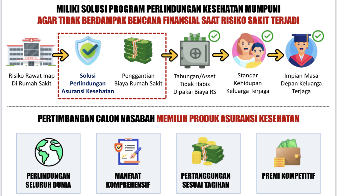 Saatnya memiliki Asuransi Kesehatan sekarang juga. Jangan tunda lagi karena Masa Depan Anda dan Anggota Keluarga Tersayang Anda (Istri, Anak, Orang Tua) semua nya ada di tangan Anda. Keputusan Anda hari ini akan menentukan Masa Depan Anda dan Keluarga di kemudian hari.